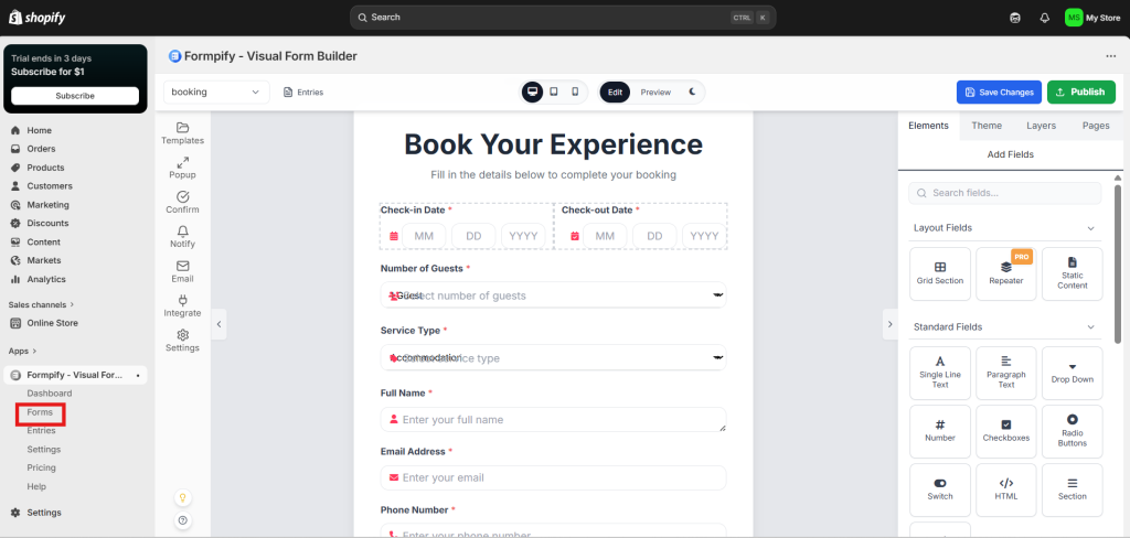 Go to your form in Formpify and open the Form Builder.