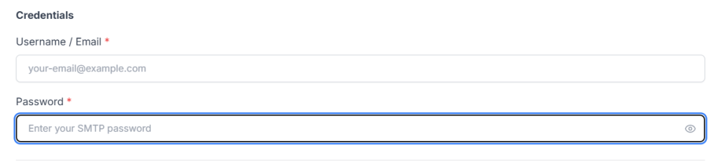 This section is used to authenticate with the SMTP server. The system will use these credentials to log in and send emails.