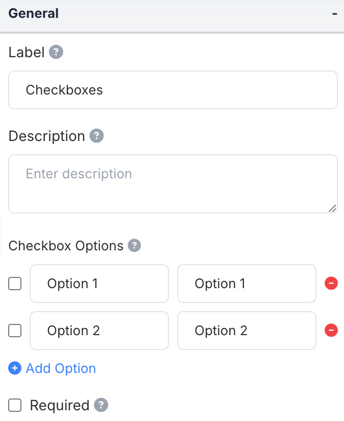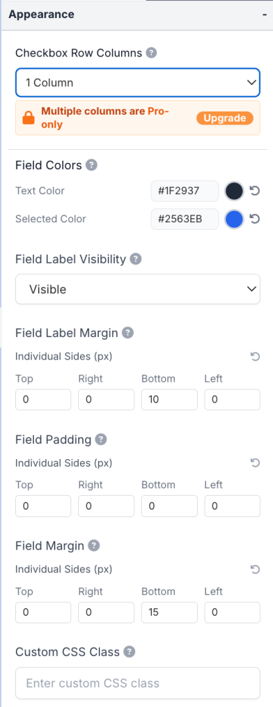 - Checkbox Row Columns: Set the number of columns for displaying checkbox options in rows
