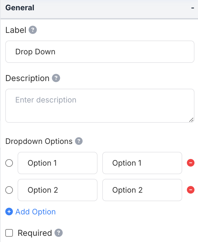 - Dropdown Options: Define the options users can select from this dropdown.