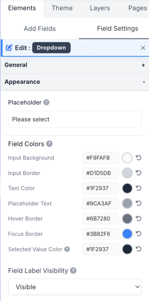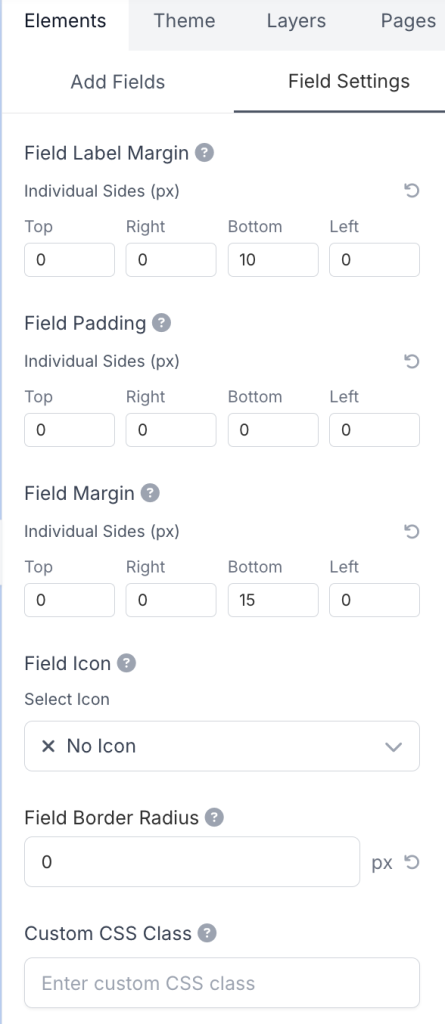 - Field Border Radius: Set the border radius for this field in pixels