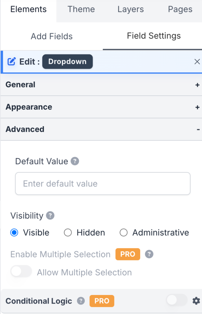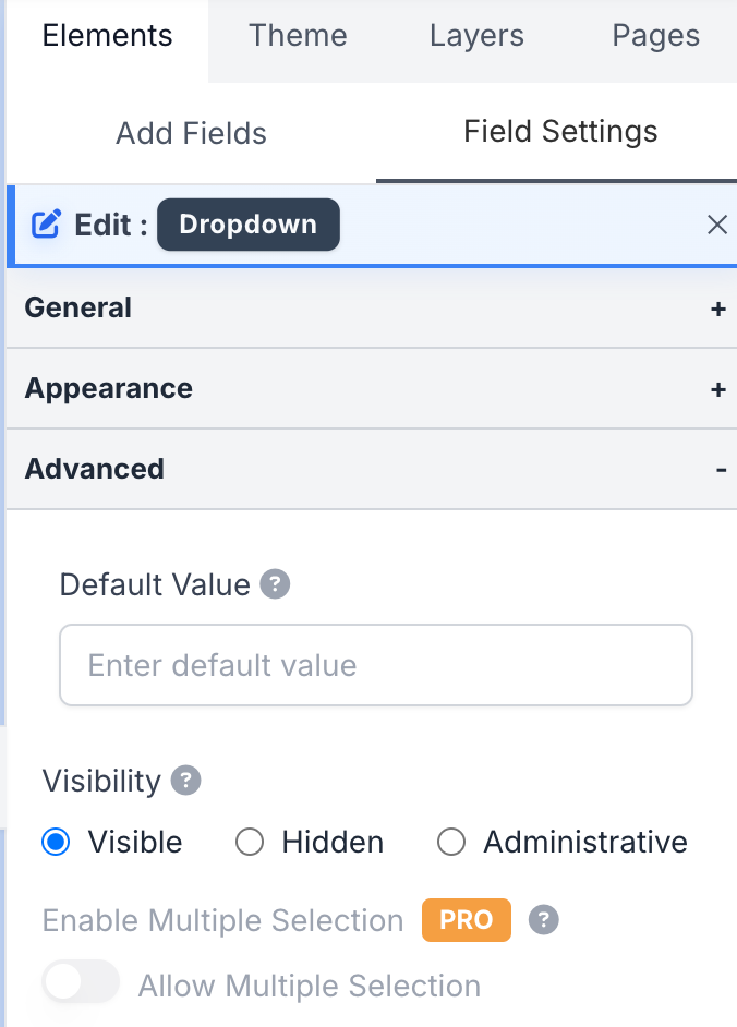 - Enable Multiple Selection: Allow selecting multiple options in this dropdown