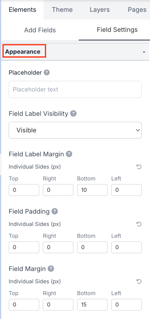 - Field Padding: Adjust the spacing around this field for better visual separation