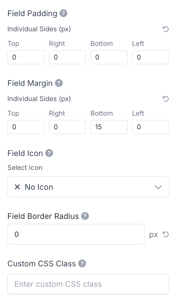 - Field Padding: Adjust the spacing around this field for better visual separation
