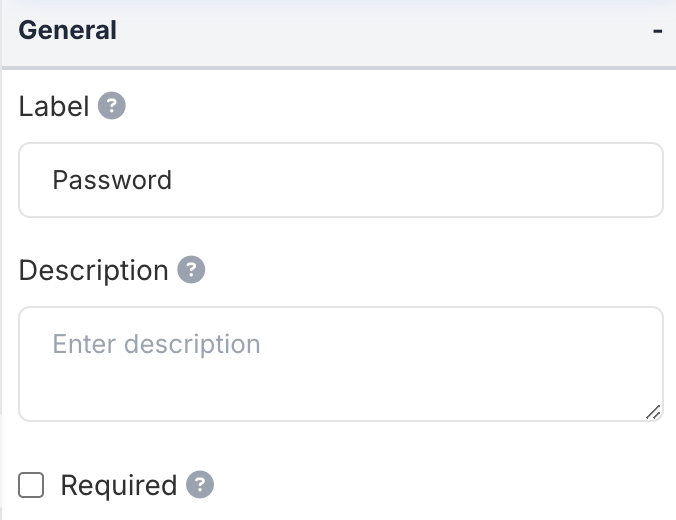 - Description: Provide additional information about this field. This will be displayed to users