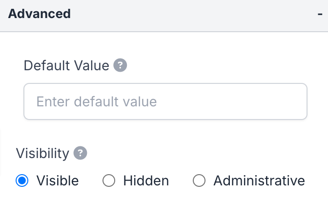 - Visibility: Set the visibility of this field. Options: Visible, Hidden, Administrative
