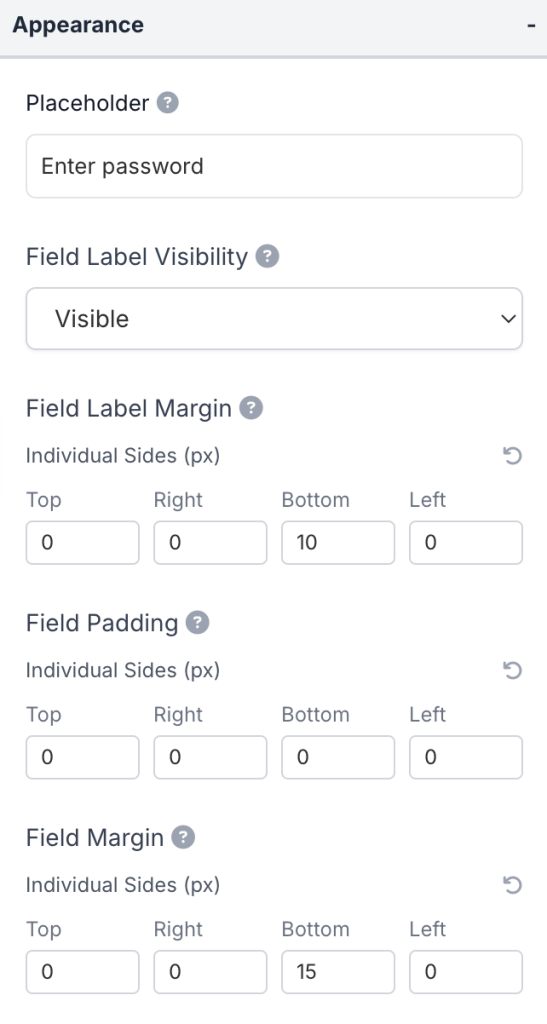 - Field Padding: Adjust the spacing around this field for better visual separation