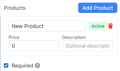 - Label: Defines the name of the Product field displayed on the form. Set the label for this field. This will be displayed to users.