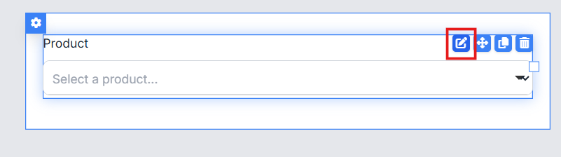 Click the Edit (pencil) icon on the Product field to open the settings panel.