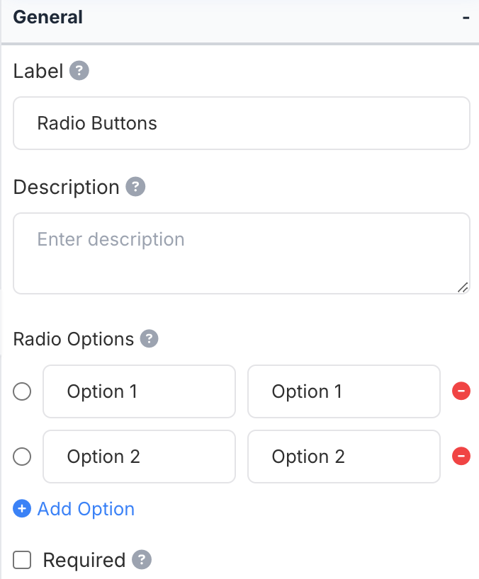 - Radio Row Columns: Set the number of columns for displaying radio button options in a row