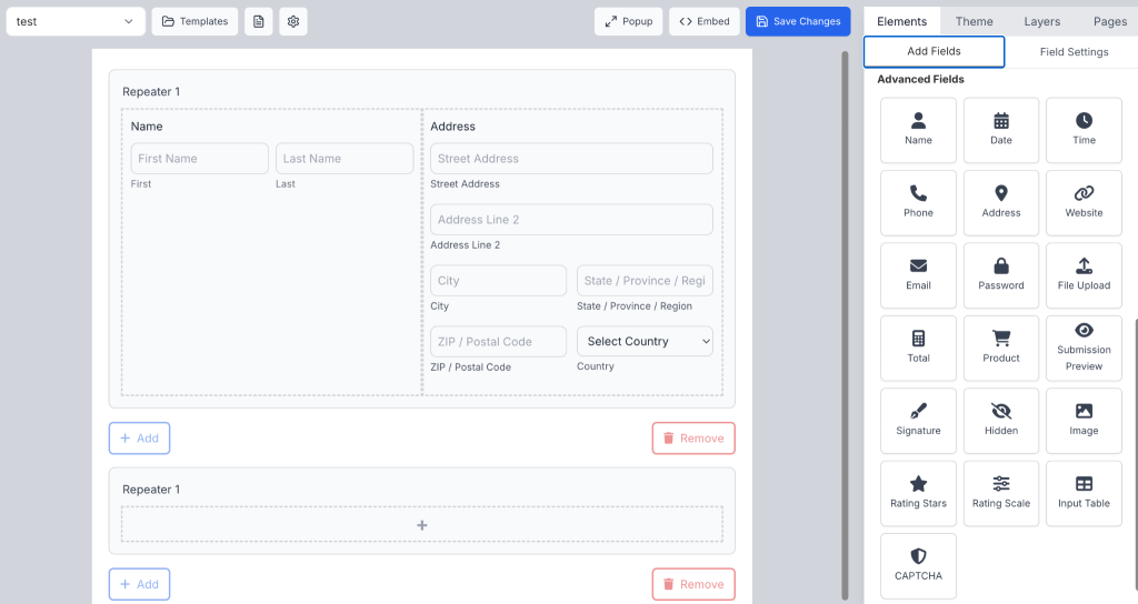 Please note that the Repeater field is available only for accounts upgraded to the Pro plan.