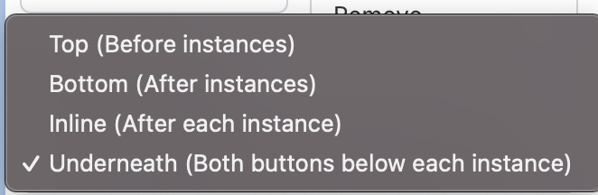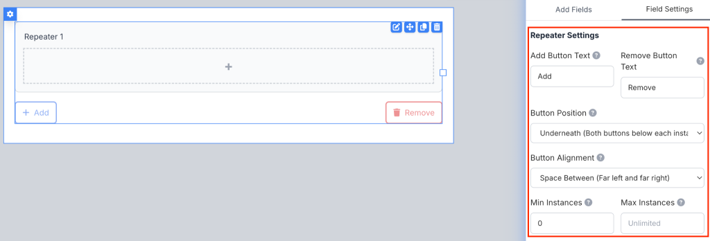 - Button Positions: Choose where the buttons appear relative to the repeater instances