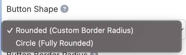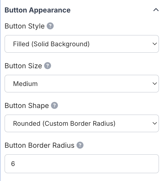 - Button Border Radius: Set the border radius for rounded corners (0-20px). Only applies when shape is “Rounded”
