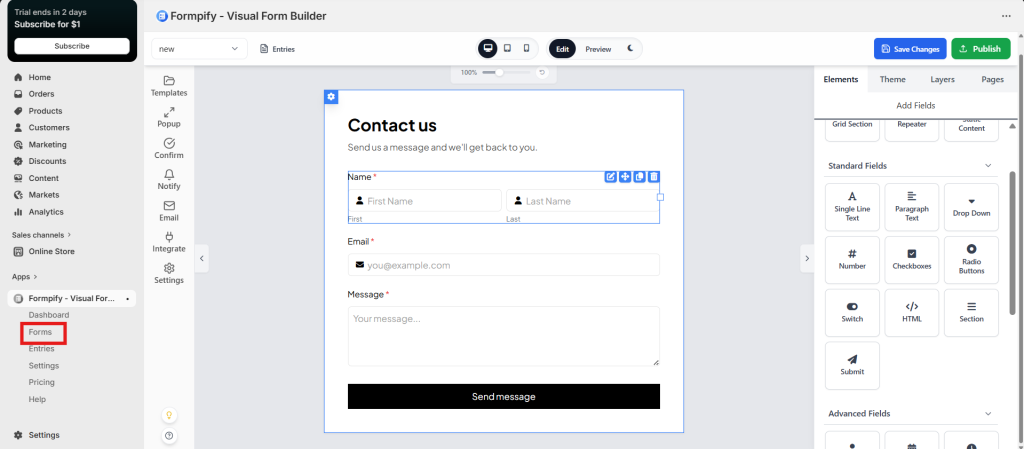Go to your form in Formpify and open the Form Builder.