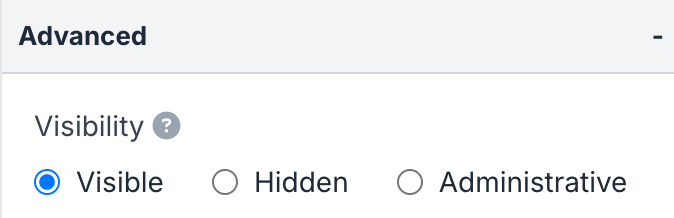- Visibility: Set the visibility of this field. Options: Visible, Hidden, Administrative
