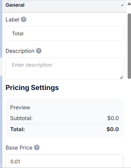 The Total field is used to automatically calculate and display the total value based on user inputs. It is commonly used for: