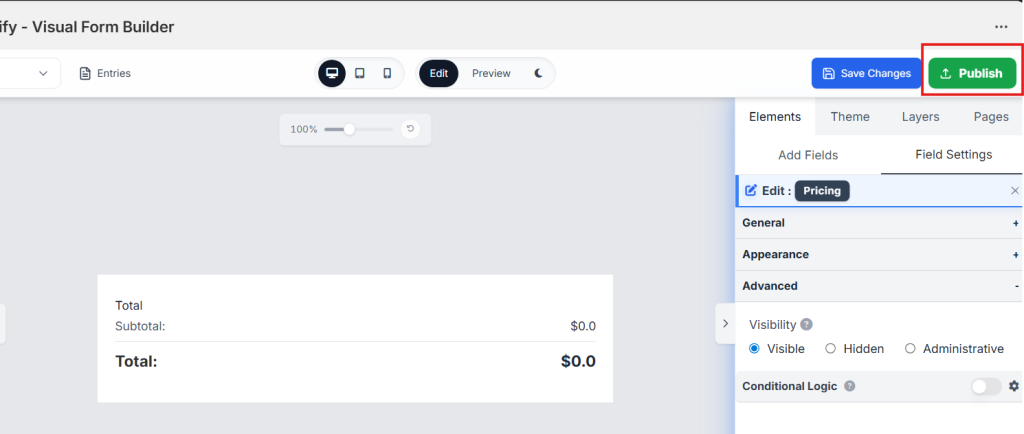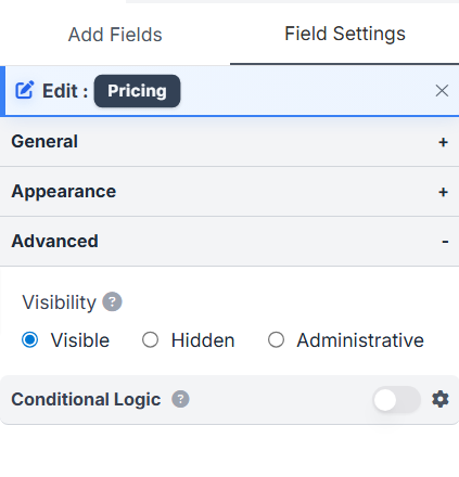 Conditional Logic: Allows the field to be shown, hidden, or triggered based on specific conditions.